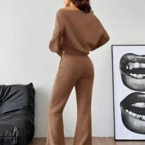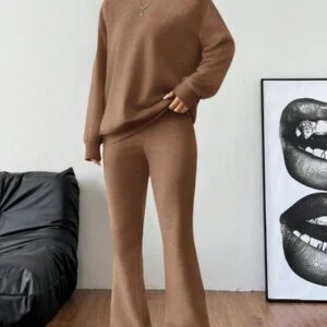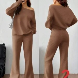 Asymmetrical Neck Long Sleeve Sweatshirt & Flare Pants