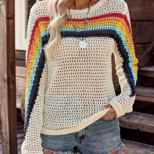 Embrace the charm of casual countryside fashion with the Striped Hollow Out Knit Sweater. This beautifully crafted sweater combines practicality and effortless style, making it a must-have addition to your wardrobe. Whether you’re lounging in the comfort of your home or exploring quaint rural sights, this piece evokes a relaxed yet refined aesthetic that stands out without overpowering.