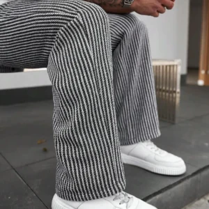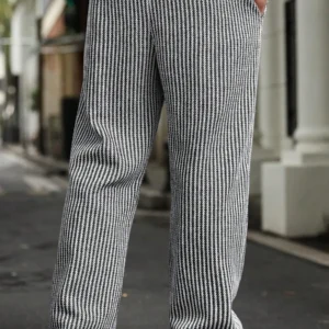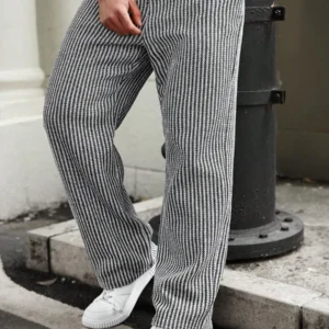 Featuring a drawstring waist, these pants offer a customizable fit tailored to your comfort. The straight-leg cut ensures a flattering look while allowing effortless movement, making them ideal for every body type. The striped design adds a touch of contemporary charm, making them versatile enough to pair with plain tees, casual tops, or smart button-downs. Whether dressed up or down, these pants blend beautifully into any wardrobe.
