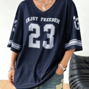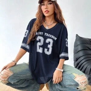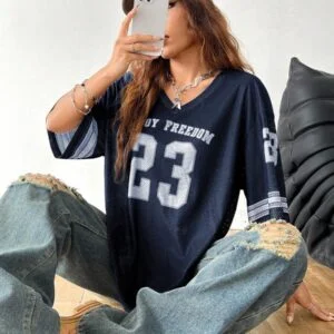 Beyond its aesthetic appeal, the Drop Shoulder Oversized V Neck Football Jersey T-Shirt delivers durability and quality. Its premium construction ensures it stands the test of time, making it a smart investment for your closet. Whether you’re upgrading your wardrobe or searching for a versatile gift, this T-shirt is an excellent choice for blending functionality with fashion.