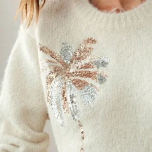 Fall Sequin Embroidered Coconut Tree Crew Neck Sweater