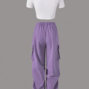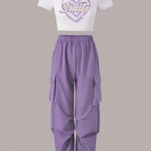 Heart & Letter Print Cargo Pants With Flap Pockets