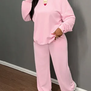 Crafted with high-quality fabrics, this pair boasts a soft and breathable texture that ensures maximum comfort. The sweatshirt features a loose fit with a classic round neck design, allowing for easy movement and a relaxed feel. The wide leg pants enhance comfort with their airy fit, making them the ideal companion for staying cozy without compromising style. Together, these pieces offer durability, wearability, and the right blend of comfort and sophistication.