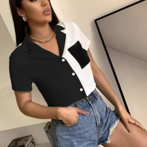 Looking for a fashion-forward piece to elevate your wardrobe? The MATEO VaVaBold Patch Pocket Colorblock Crop Blouse is your ultimate answer. Combining lively design and practical elements, this blouse blends style, comfort, and versatility seamlessly. The colorblock pattern ensures a standout look, while the crop style adds a trendy edge, perfect for pairing with high-waisted jeans, skirts, or shorts.