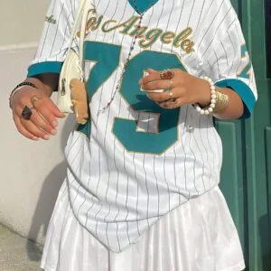 Numeric & Letter Print V Neck Short Sleeve