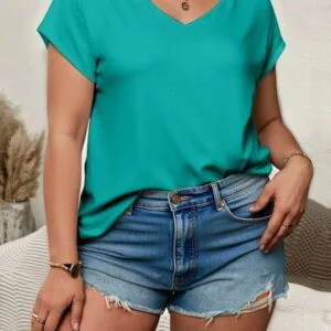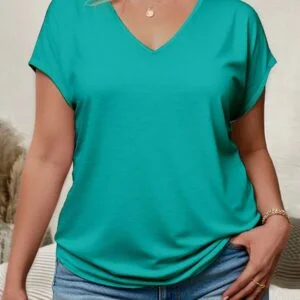 If you’re searching for a versatile piece to infuse your wardrobe with effortless charm and superior comfort, the Plus Size V Neck Plain Short Sleeve is an undeniable must-have!