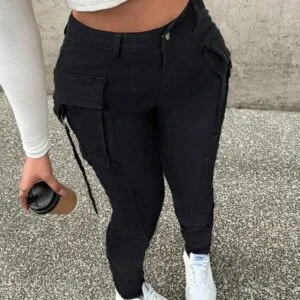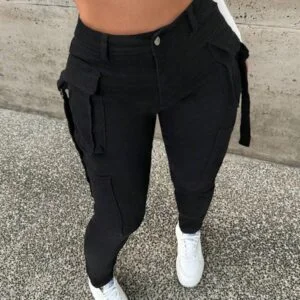 Step up your fashion game with these sexy tight stretch black denim cargo jeans. Designed to flatter your figure while offering supreme comfort, these jeans are a must-have in every wardrobe. Featuring a stylish black wash and a slim fit design, they strike the perfect balance between edgy and versatile. Whether you’re heading out for a casual day or a night out on the town, these jeans will make you look effortlessly chic.