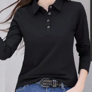 This long sleeve casual top promises versatility in styling. Pair it with fitted jeans for a chic weekend look or layer it under a blazer for added polish while at work or a dinner outing. With the practicality of solid colors, choosing the right accessory couldn’t be easier. It’s truly a timeless addition to any wardrobe for those who seek effortless fashion without compromising on comfort.
